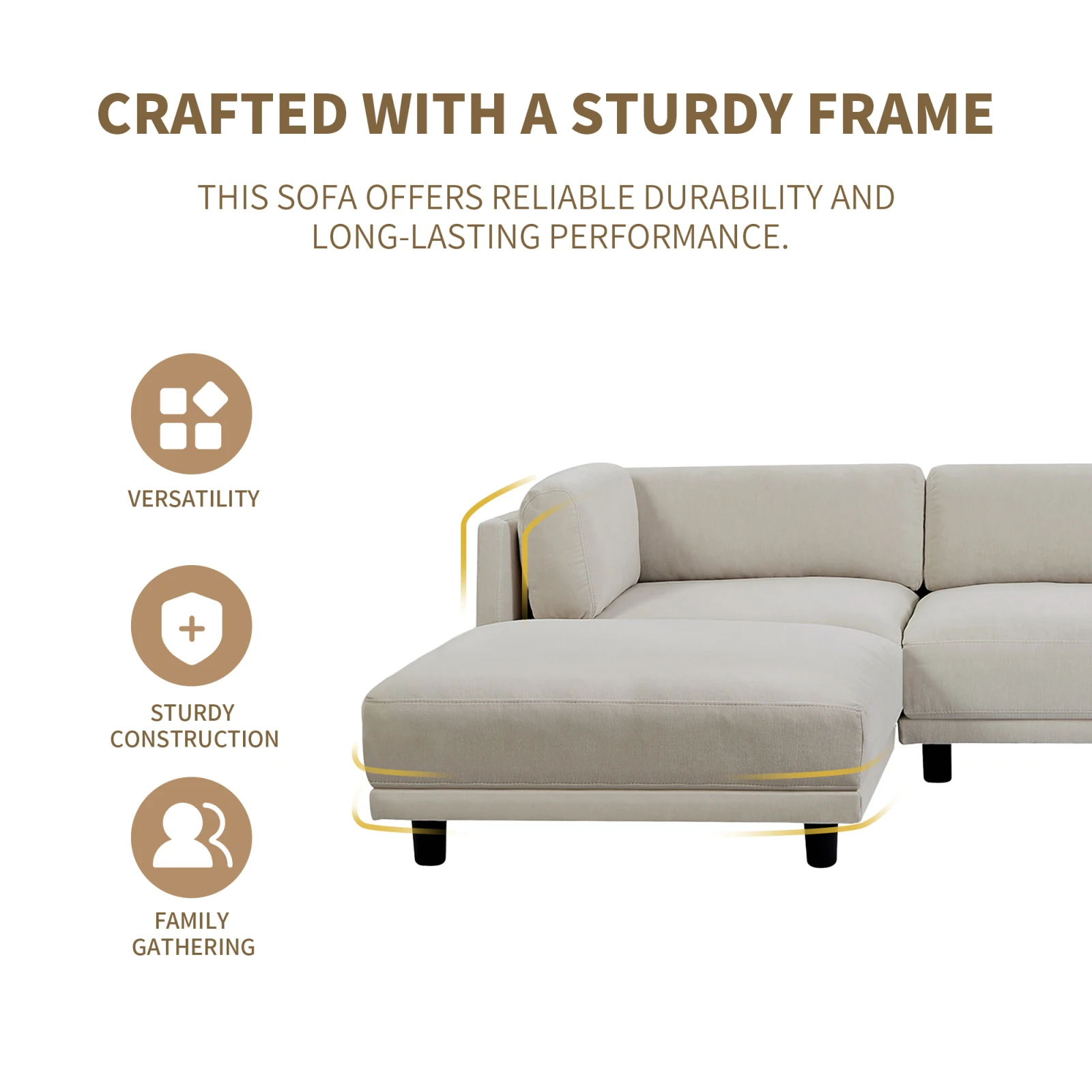 · Sturdy Frame: Crafted with a sturdy frame, this sofa offers reliable durability and long-lasting performance. The robust construction ensures that the sofa can withstand daily use and maintain its structural integrity over time.