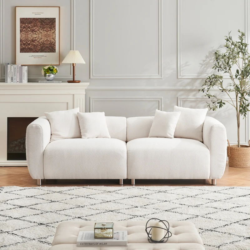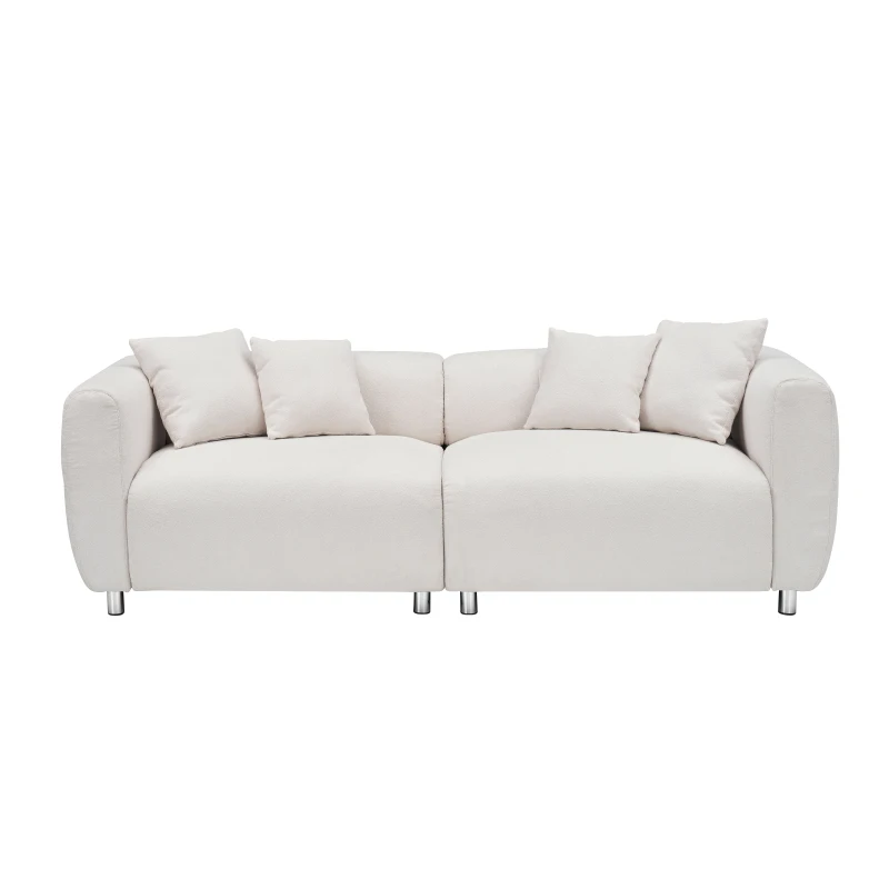 89 inch Sofa for Living Room, Fashion Sofa with Metal Legs, 3 Seater Sofa, Solid Wood Frame Couch with 4Pillows, for Living Room
