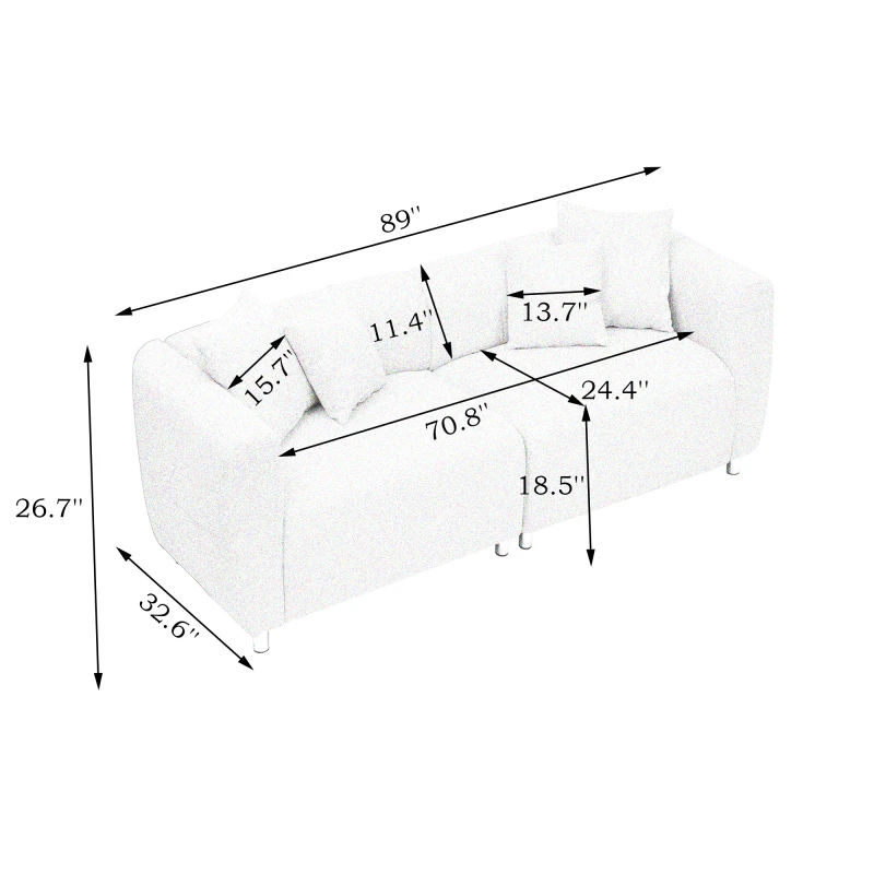 • Oversized Loveseat Sofa for Living Room,solid wood frame, Individual spring wrap seat cushionm, doll cotton pillow,89" x ”32.6" x 26.7"