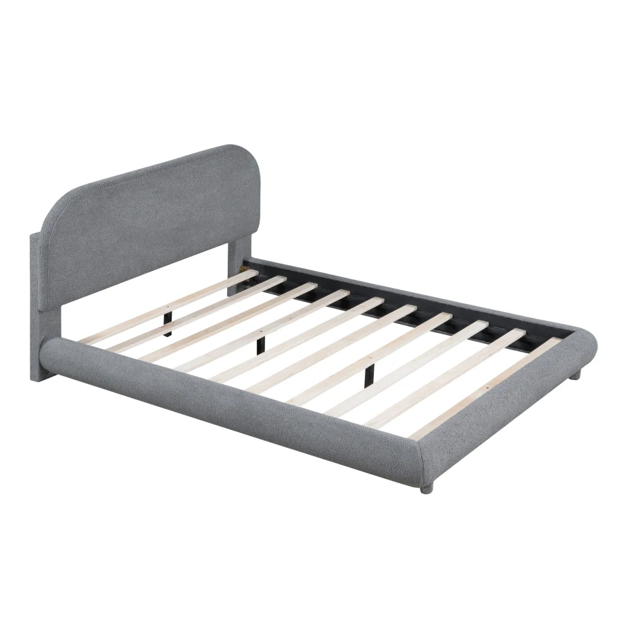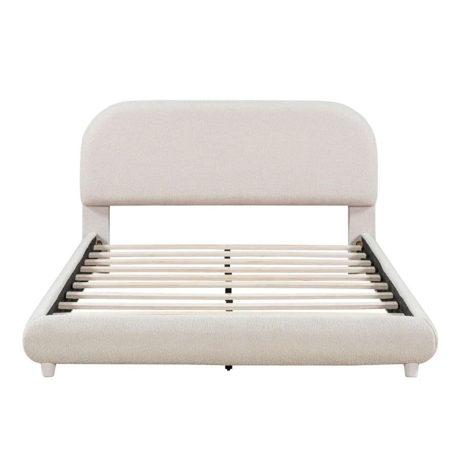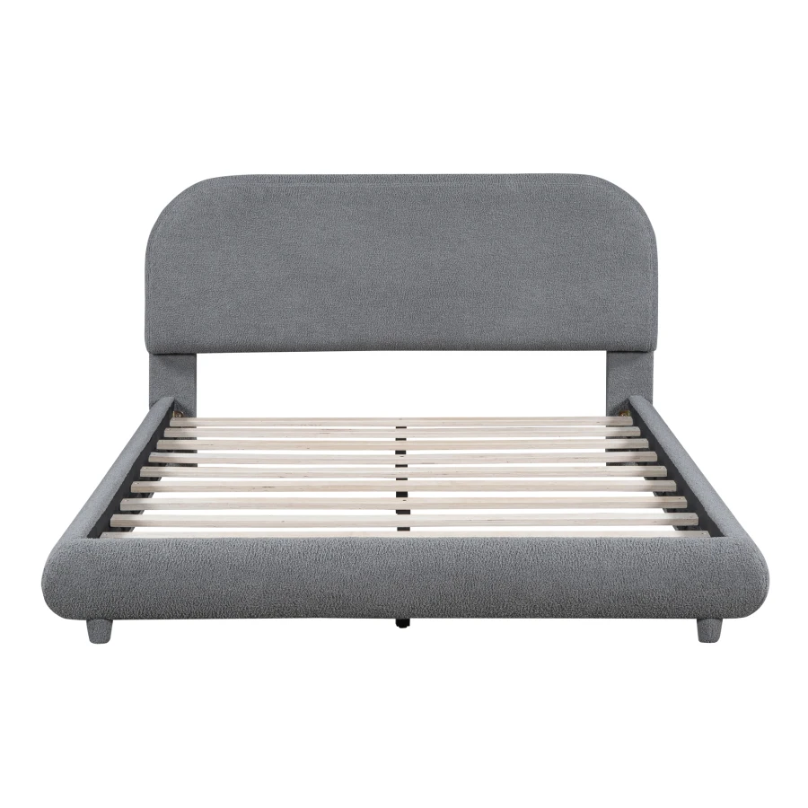 This beautiful Upholstered Platform Bed with with curve-shaped design on the headboard, footboard and side rails, adds a contemporary chic look to your bedroom and is upholstered in thick teddy fleece fabric to add extra comfort. Sturdy wood frame construction and a wooden slat system to add extra stability and safety.Enjoy many long years of relaxation and family fun, secure in this meticulously designed platform bed.This grounded upholstered bed will be both a beautiful piece in the room and a place full of fun for your family.