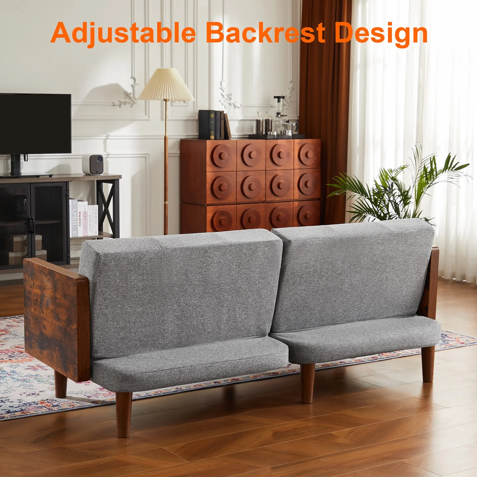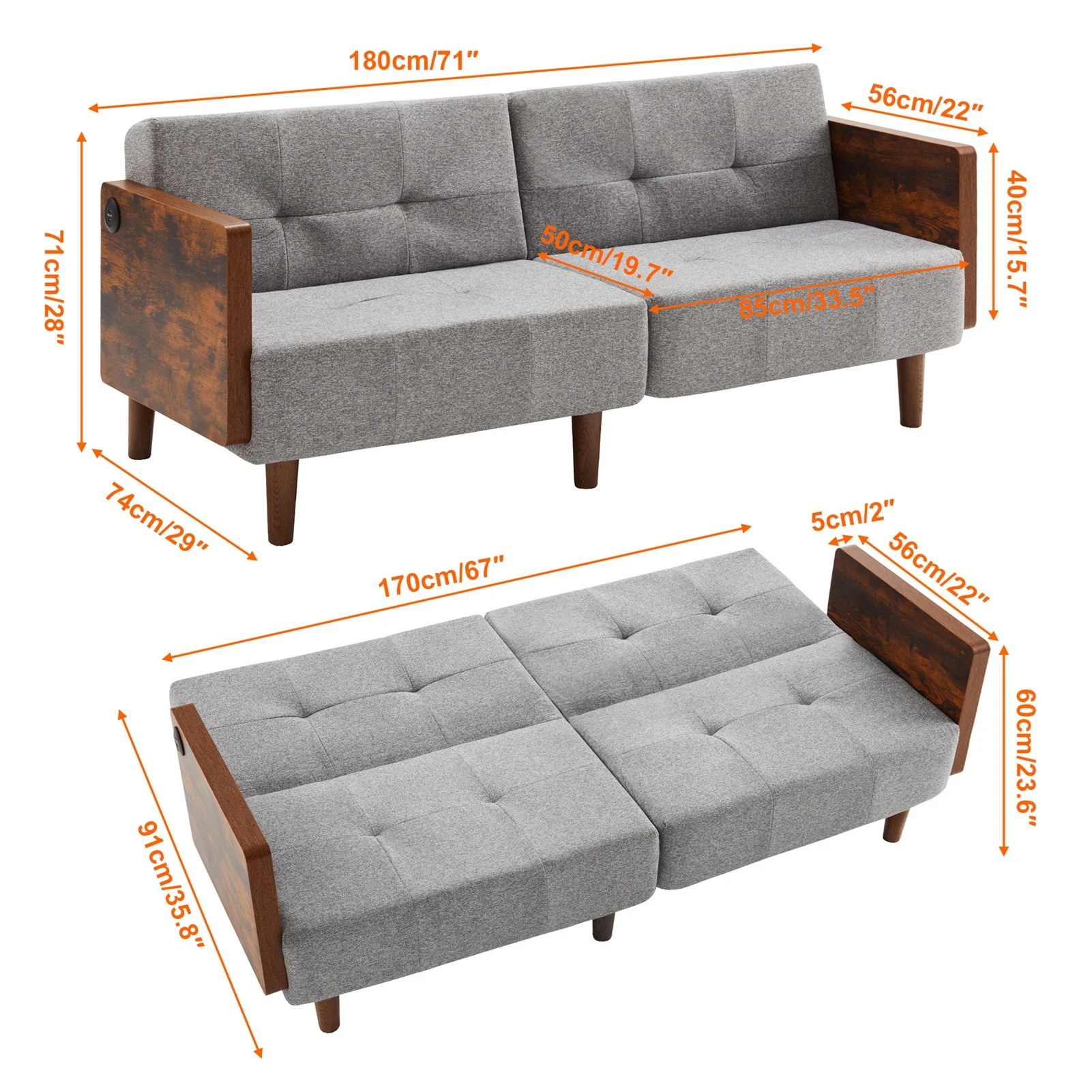 Sofa Bed Twin 71in Wide Cotton Fabric Cushion Back Upholstered Arm 14 Segments Adjustable Angle Lengthen Dark Gray