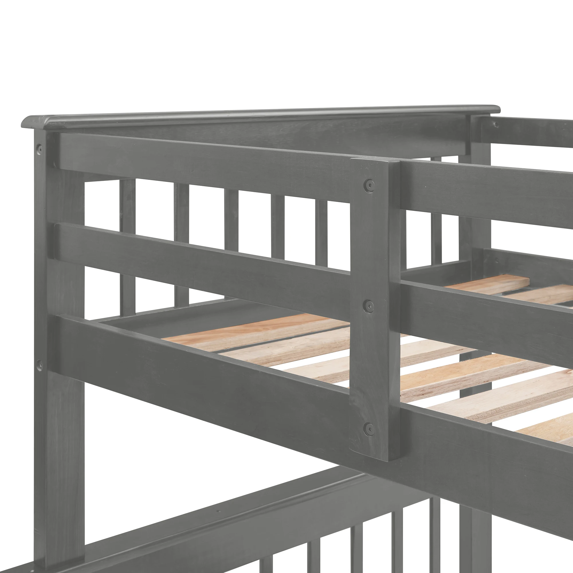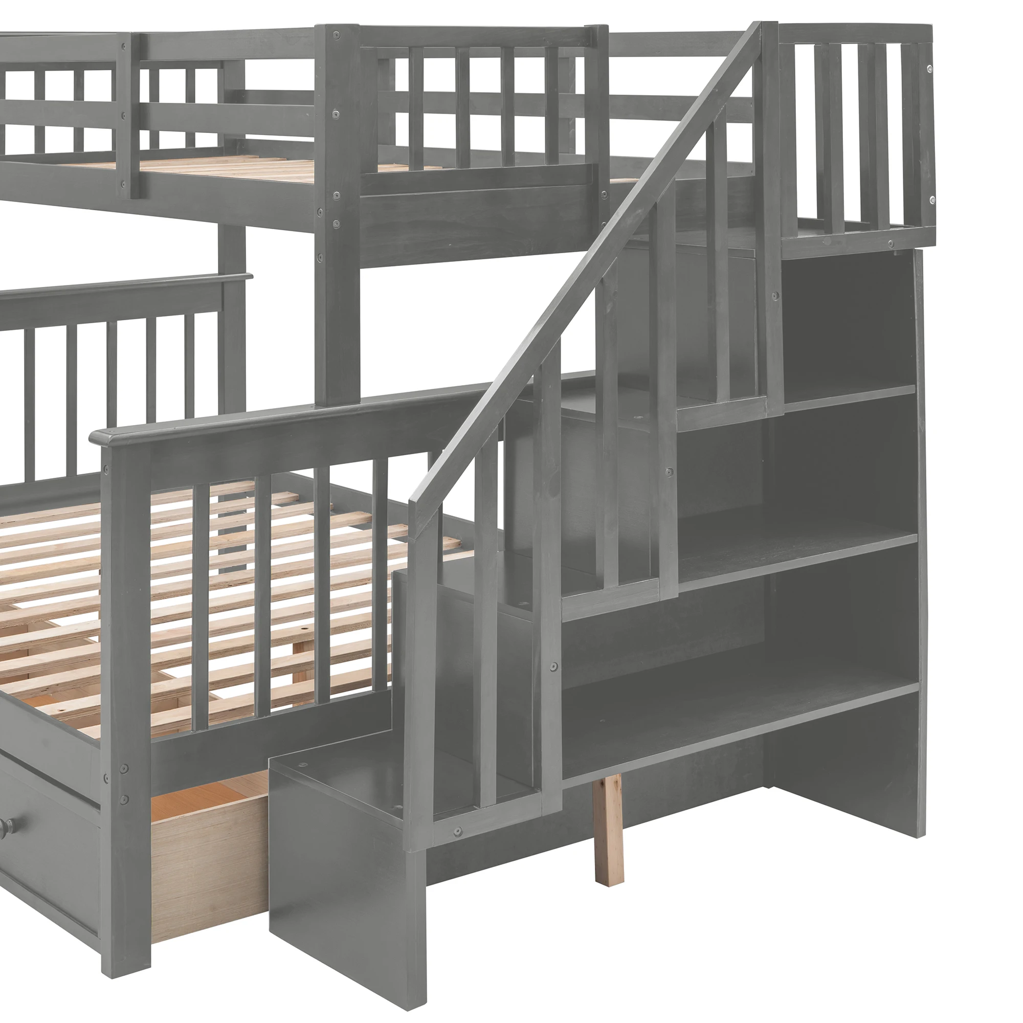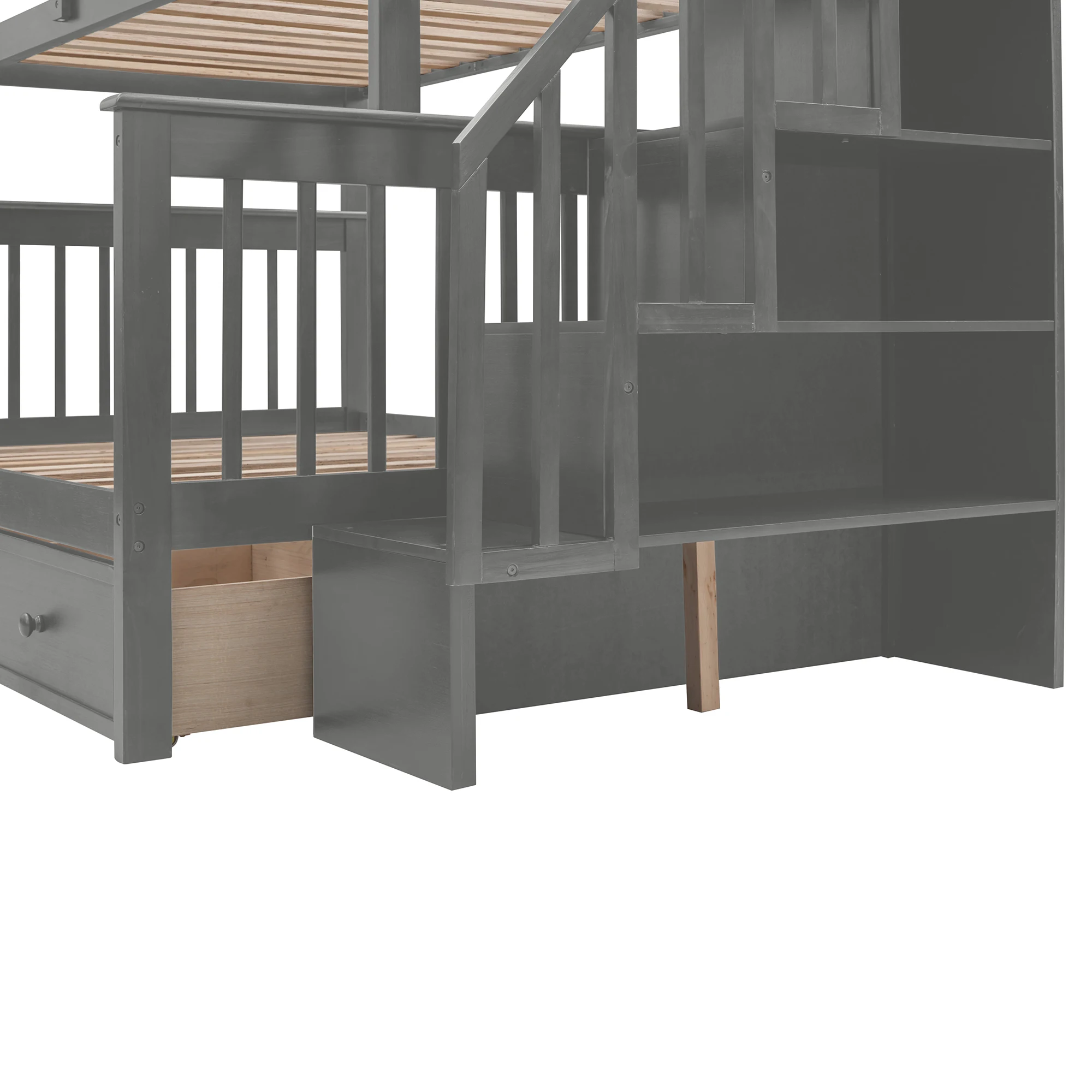Stairway Twin-Over-Full Bunk Bed with Drawer, Storage and Guard Rail for Bedroom, Dorm, for Adults, Gray color
